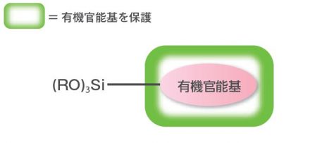 官能基型シランカップリング剤は、有機官能基を保護することで、これまで反応性が高く同時に添加できなかった系への応用が可能となり、二液としていた材料の一液化などに使用されています。