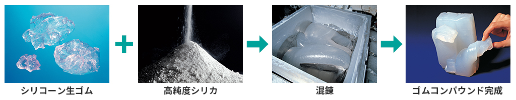 信越シリコーンのゴムコンパウンドは、無機と有機の性質を兼ね備えた、特異なシリコーン生ゴムと高純度のシリカを主成分とし、ほかの有機系ゴムにはないさまざまな特長を備えています。